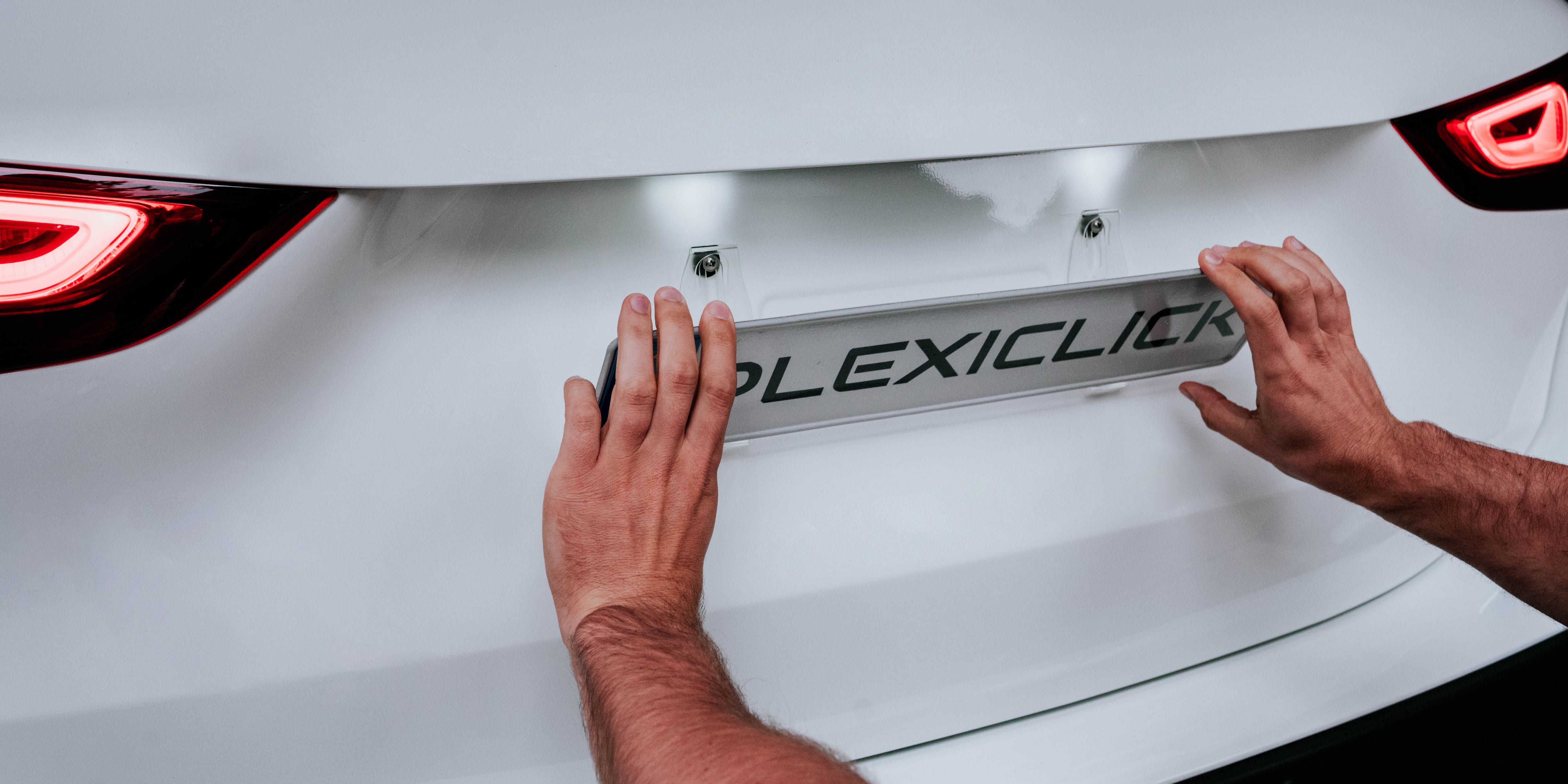 The Plexiclick® is unique thanks to the patented system: the licence plate is held invisibly and framelessly without the need for adhesives or solutions such as Velcro or magnets.