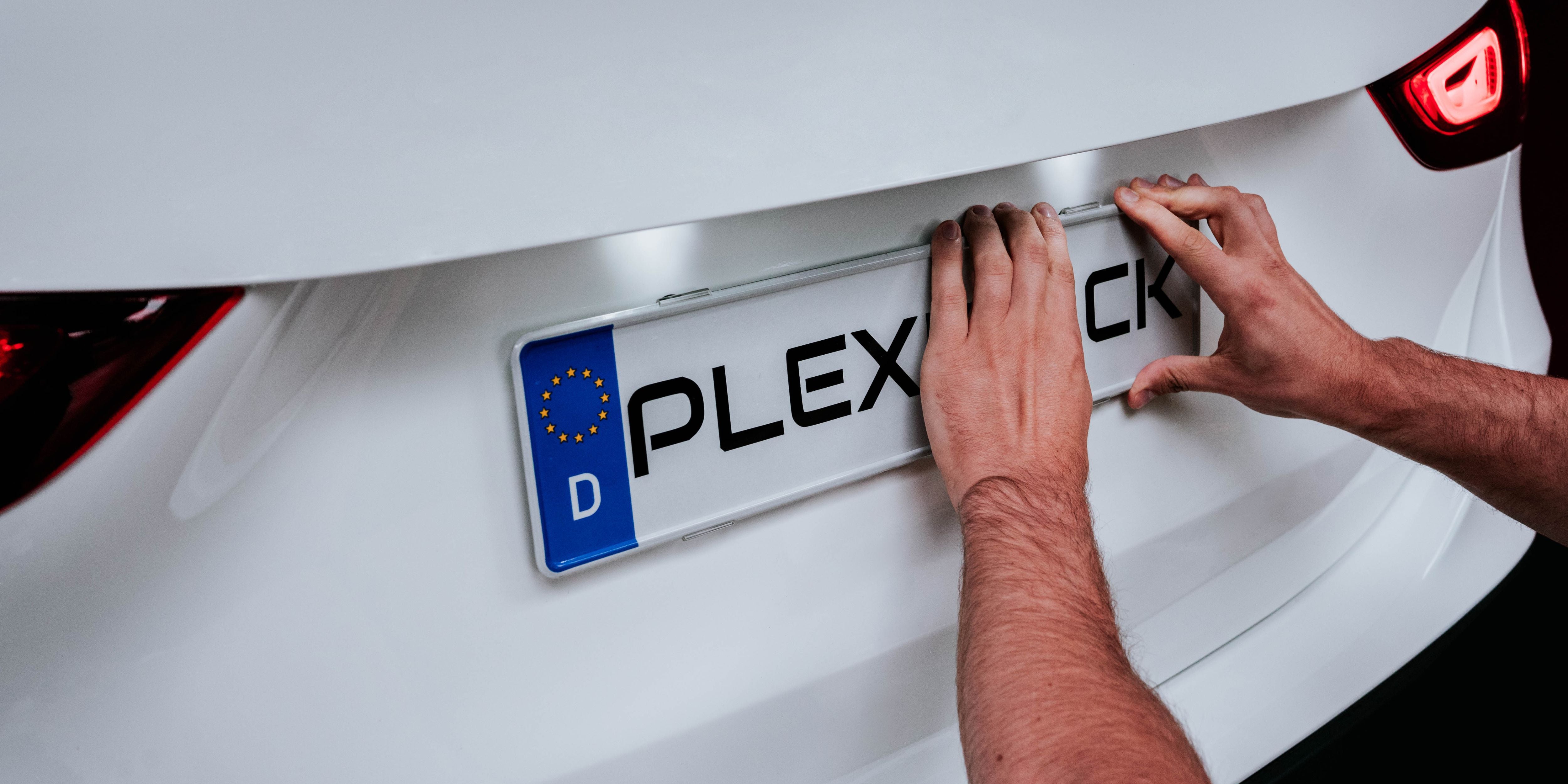 Each delivery includes 4x Plexiclick® clips for mounting two license plates.
